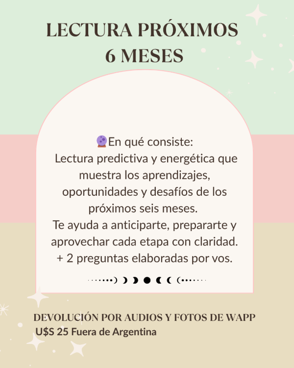 Para realizar tu lectura, una vez que realices el pedido por la web, por favor envianos por WhatsApp +54 9 11 7362-4992 o al mail, guadalupanasoficial@gmail.com